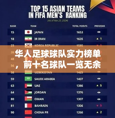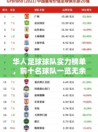 足球是全球最受欢迎的体育项目之一,而华人足球球队也在全球范围内崭露头角,在这篇文章中,我们将探讨华人足球球队排名前十名,介绍这些球队的历史、成就和现状。